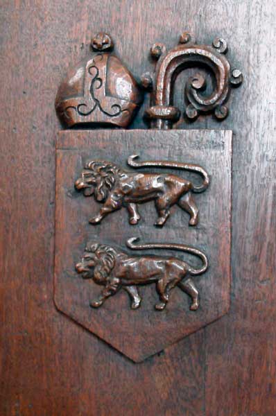 Armoiries de Louis de Blanchefort Panneau sculpté d'une stalle de l'abbatiale Saint-Pierre et Saint-Paul