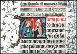 et saint Potentien. Miniature attribuée au Maître de Bedford ou au Maître de Boucicaut, in Bréviaire à l'usage de Paris, circa 1414, BM. Chateauroux, ms 0002, f. 374 v. |