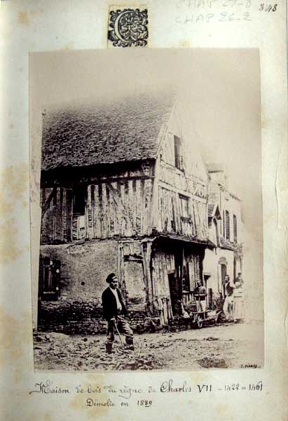 La maison de bois, photo extraite du manuscrit de Tranquille Picard "Maison de bois du règne de Charles VII, (1422 - 1461) Démolie en 1889"