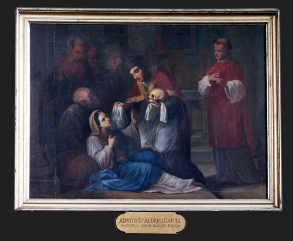 Dans le but d'authentifier les reliques retrouvées de saint Aldric on présente le crâne à une jeune aveugle qui retrouve la vue instantanément...
